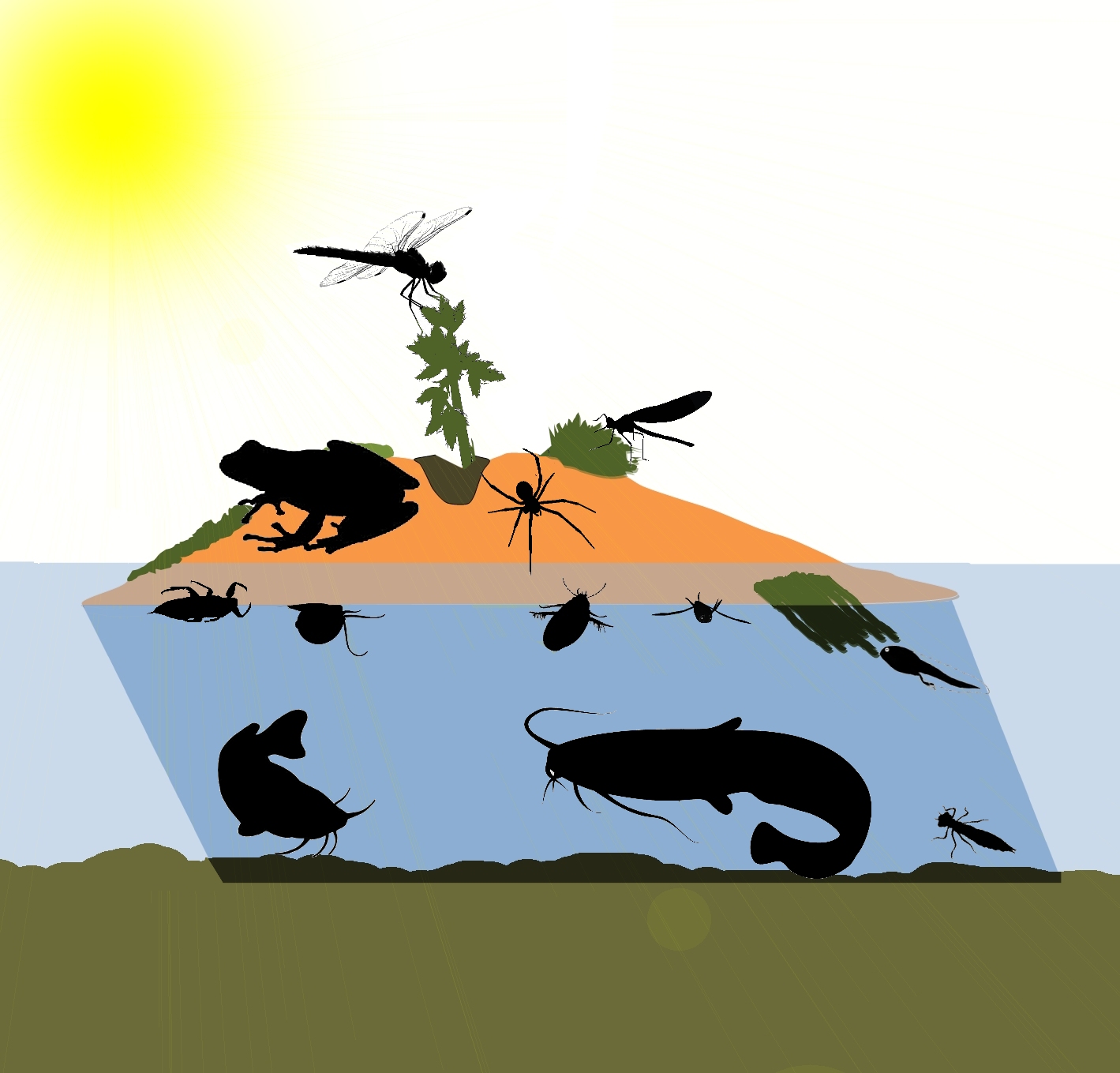 These are structures that resemble a rock but they can float. They are very attracted by frogs. Dragonflies tend to sunbath on top and a water spiders and frogs use it as resting platform. Underneath, the shadow cast by the buoyant faux rock is used by fish and larvae of aquatic insects to seek for shelter.